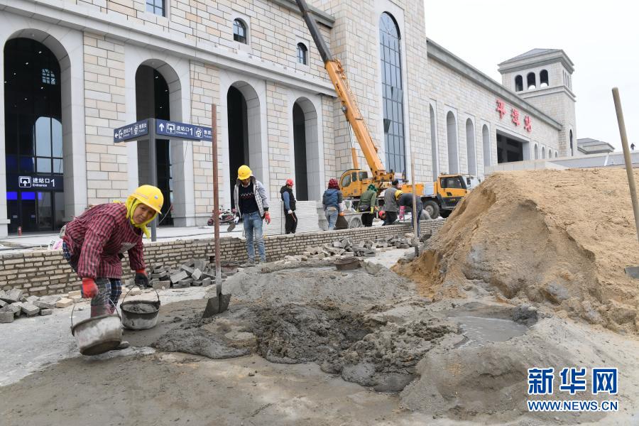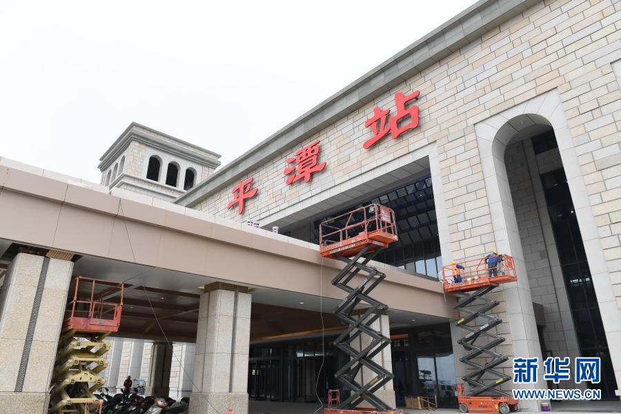 12月22日拍攝的建設中的福平鐵路平潭站(無人機照片)。 眼下,福(州)平(潭)鐵路平潭站內外裝飾、廣場綠植等各項施工正加緊進行,為計劃于12月底的開通運營做準備。福平鐵路是京福高鐵的重要延伸段,線路全長約88公里,設計時速200公里。新華社記者 林善傳 攝