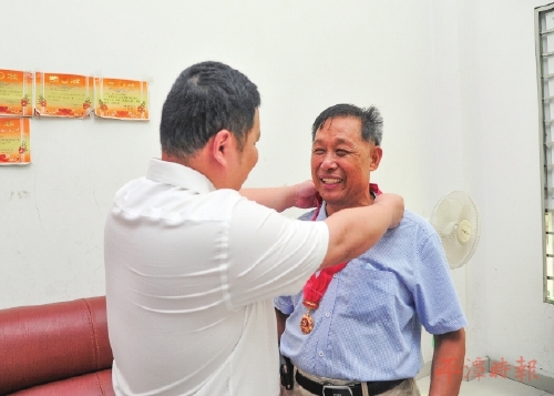 “沒有共產黨,就沒有我的一生!”17日上午,實驗區交建局工作人員逐一上門走訪,為平潭交建系統內幾位黨齡50年以上的老黨員頒發紀念章。今年75歲的老黨員陳振燦接過閃爍著金黃色光澤的紀念章,驕傲滿滿。