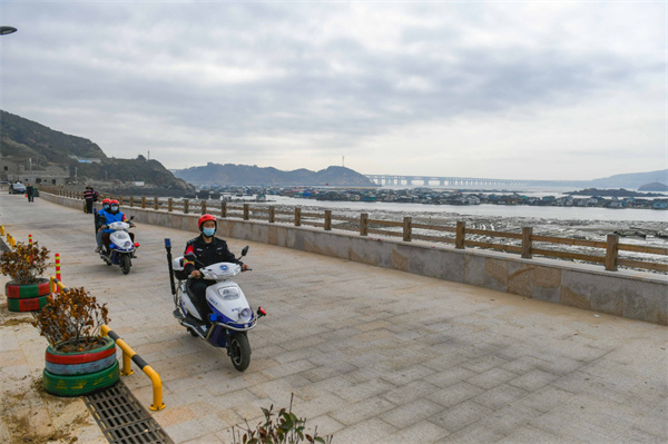 福建法治報—海峽法治在線3月24日訊 3月的午后,走進平潭鐘門村,身著“治安巡邏隊”隊服的臺胞蘇文楨正與隊友開展巡邏工作,只要發現村里有特殊情況,蘇文楨便會通過手機及時反映給公安民警。