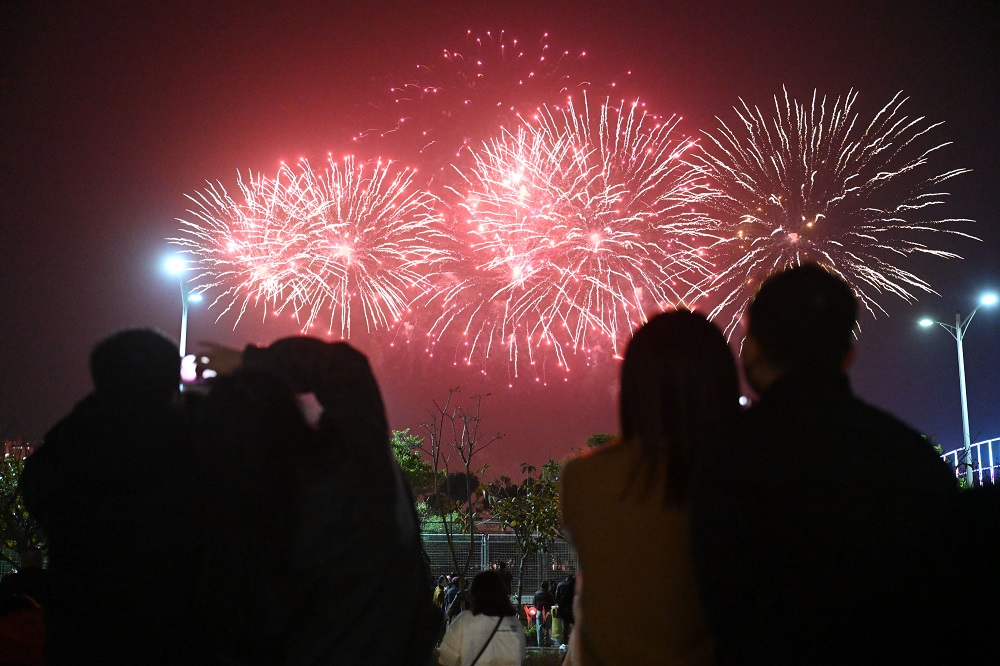 人們在煙花中迎接新的一年。