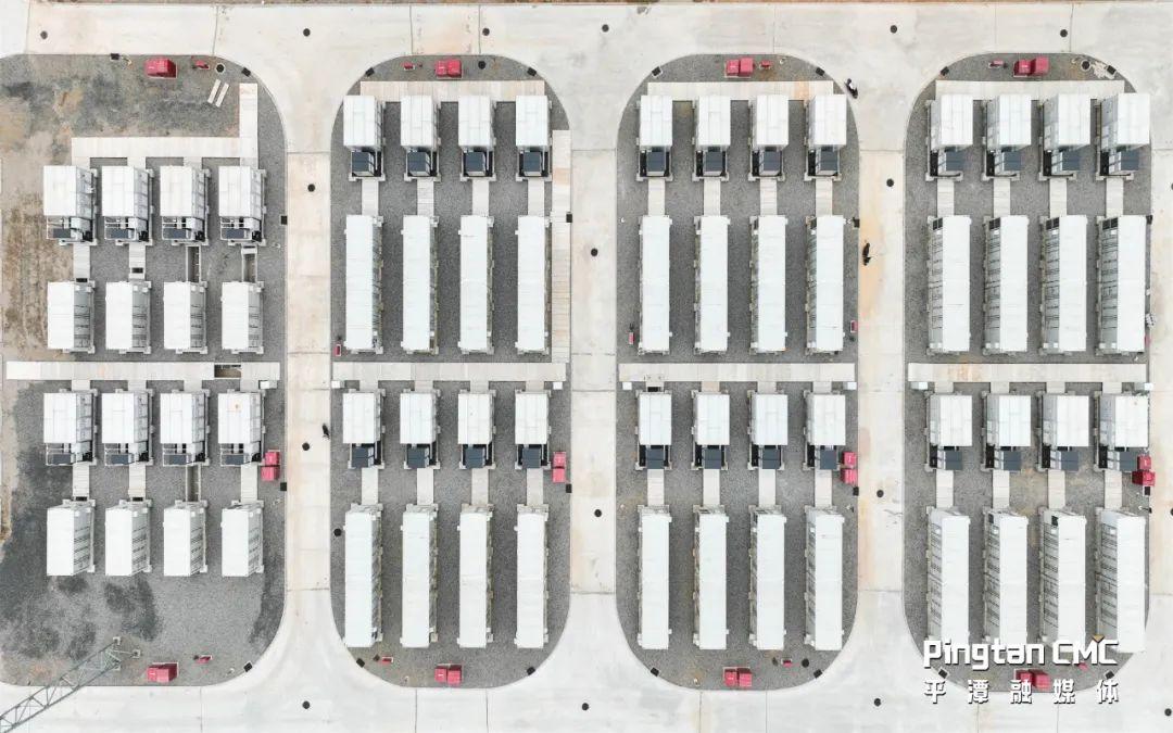 據悉,項目分為升壓站、儲能區、線路工程三個部分,在儲能區,一個個排列整齊的白色箱體便是這座大型“充電寶”內部的電池。根據項目規模,儲能區約能儲存24萬千瓦時的電量。