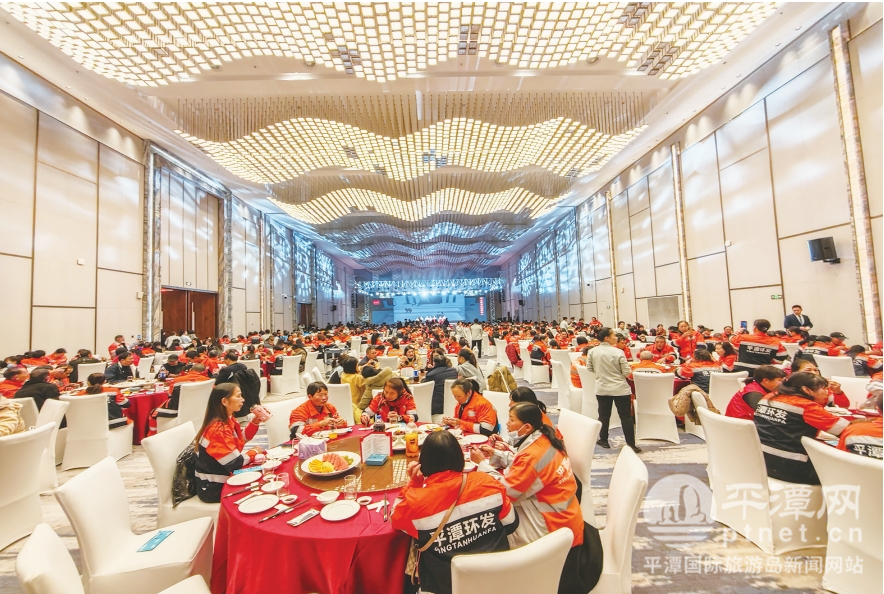 平潭網1月27日訊(融媒體記者 蔡曦媛 文/攝)23日晚,實驗區總工會、實驗區交建局聯合多部門開展“情暖嵐島 致敬城市黃玫瑰”第十屆環衛工人團拜會暨年夜飯活動。近800名環衛工人歡聚一堂,提前吃上年夜飯,暖心又暖胃。