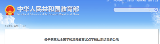 根據(jù)《教育部辦公廳關于開展第三批全國學校急救教育試點工作的通知》(教體藝廳函〔2024〕46號),經(jīng)學校自主申報、省級教育行政部門遴選推薦、專家復核,教育部擬認定2926所學校為第三批全國學校急救教育試點學校,現(xiàn)予以公示,公示期為2025年5月12日至5月16日。