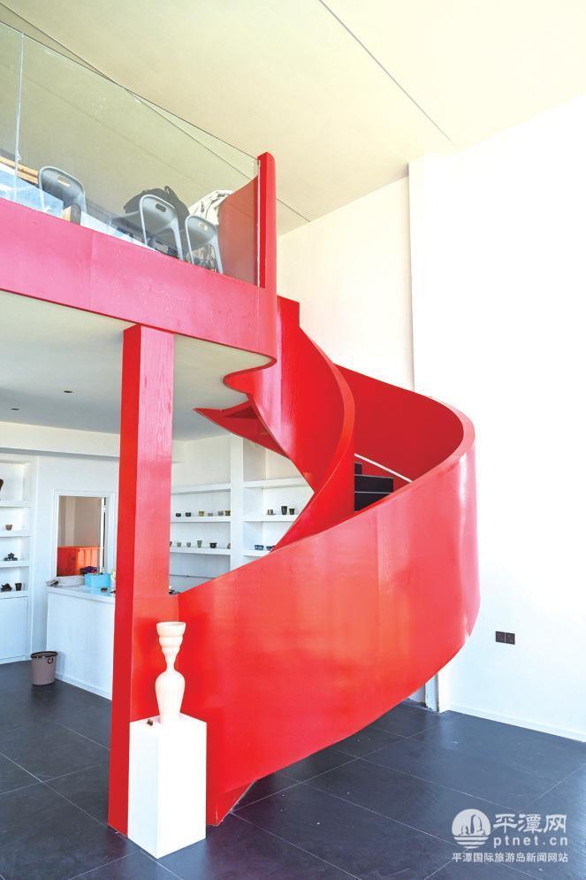 海陶體驗(yàn)館內(nèi)的紅色旋轉(zhuǎn)樓梯極具藝術(shù)美感