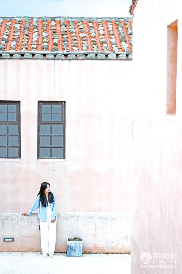 石頭厝的粉紅色墻面吸引游客打卡拍照。
