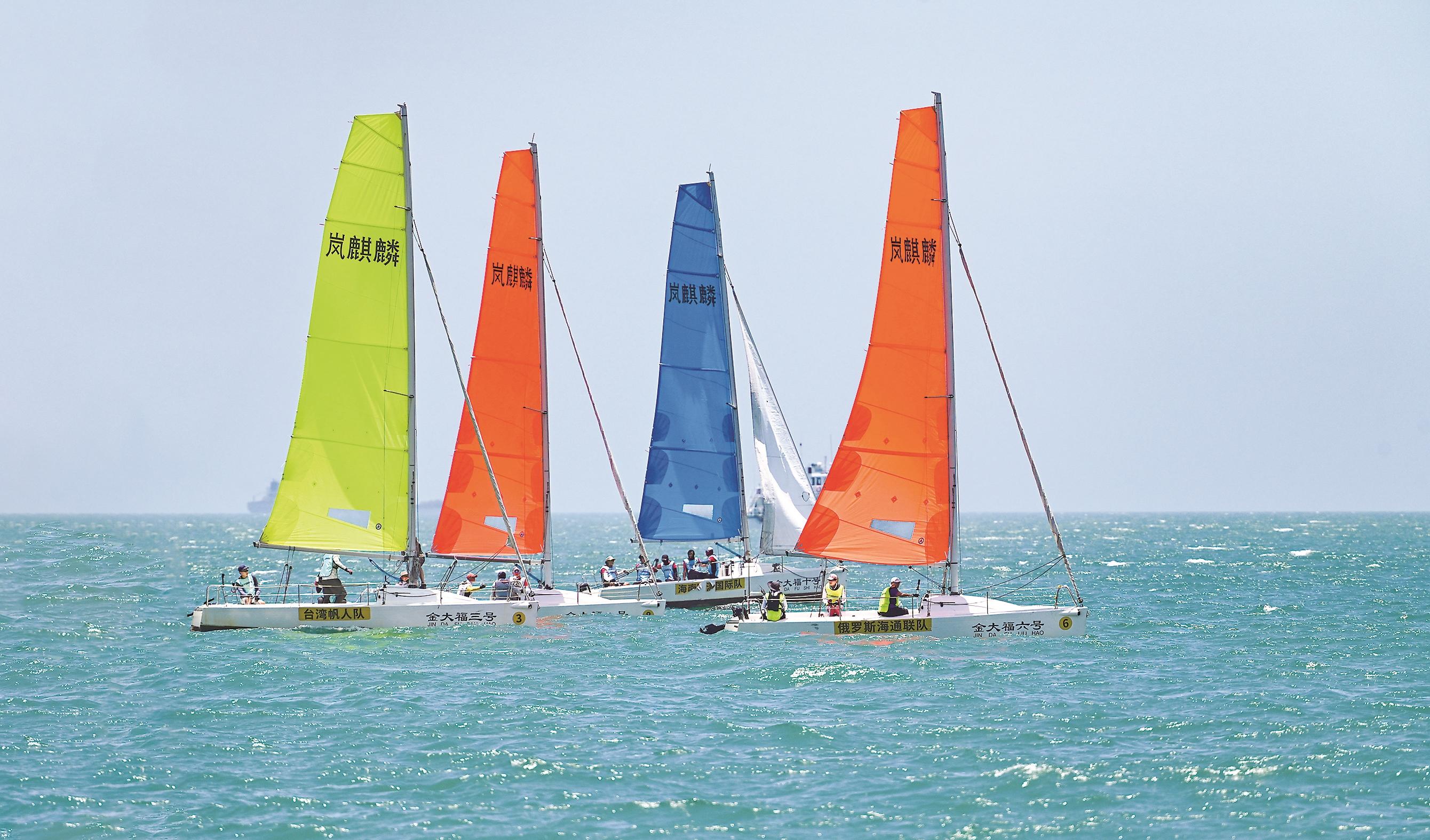 2025年中國平潭國際帆船賽開賽,小飛虎帆船在海上激烈追逐。江信恒 攝