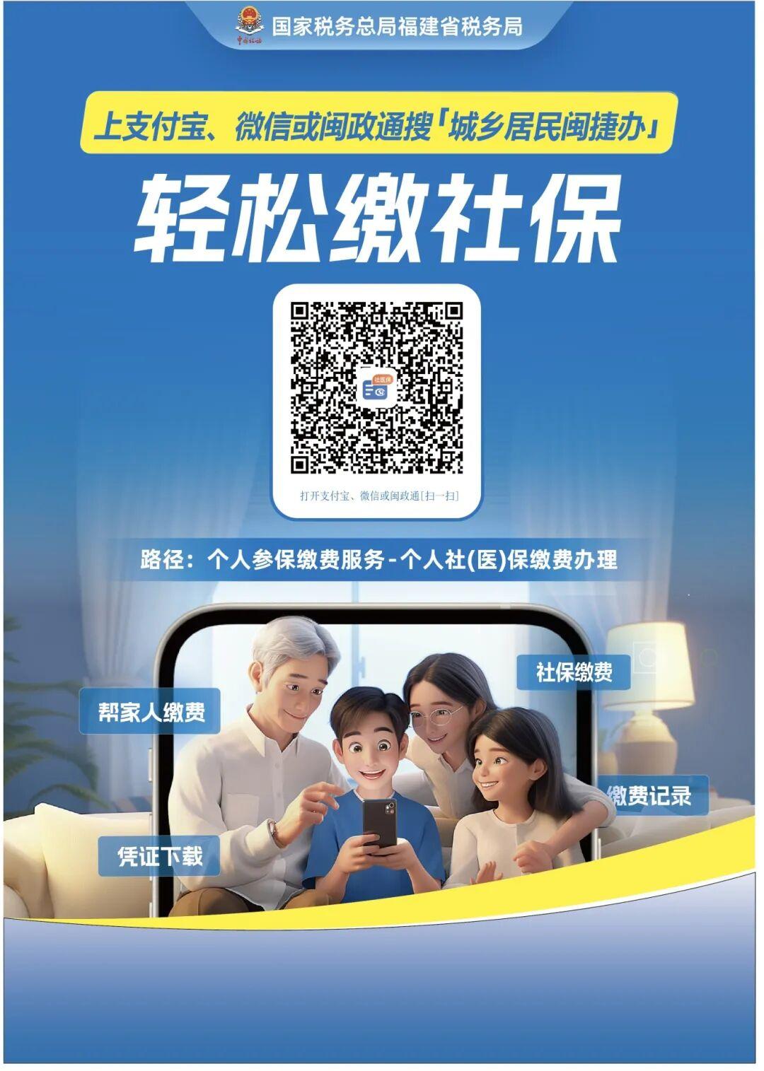 溫馨提示:1.如您已完成參保登記,但發現無有效繳費信息時,請至區行政服務中心重新確認參保登記信息,以免耽誤繳費業務辦理。2.參保人員繳費成功后,可通過“閩政通”APP、“福建稅務”微信公眾號或掃描“自然人醫社保繳費聚合碼”查詢模塊,獲取加蓋電子簽章的繳費證明或稅收完稅證明。咨詢電話:12366(稅務)、12345(醫保)。