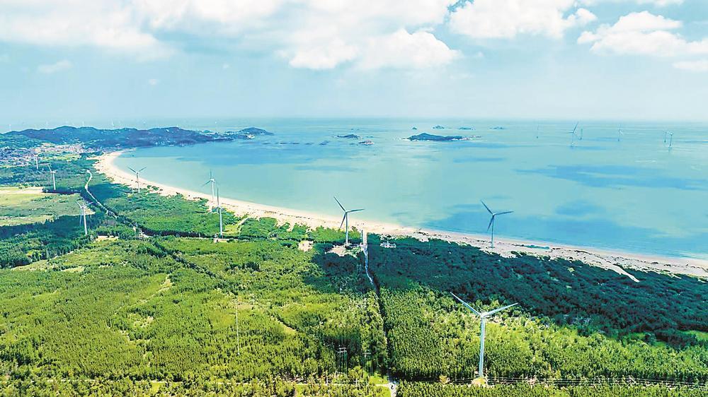 在平潭長江澳,郁郁蔥蔥的林海沿著海岸線延伸。 通訊員 林君斌 攝