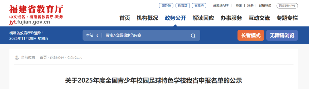 根據《福建省教育廳辦公室關于開展2025年度全國青少年校園足球特色學校申報工作的通知》(閩教便函〔2025〕1200號),經各校自主申報、各設區市教育局(含平潭)審核推薦,全省158所中小學申報2025年度全國青少年足球特色學校,現將名單予以公示。