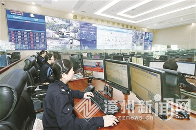 在市公安局指揮情報中心,“漳州110”值班人員正在接轉(zhuǎn)報警電話。本報記者林忠攝