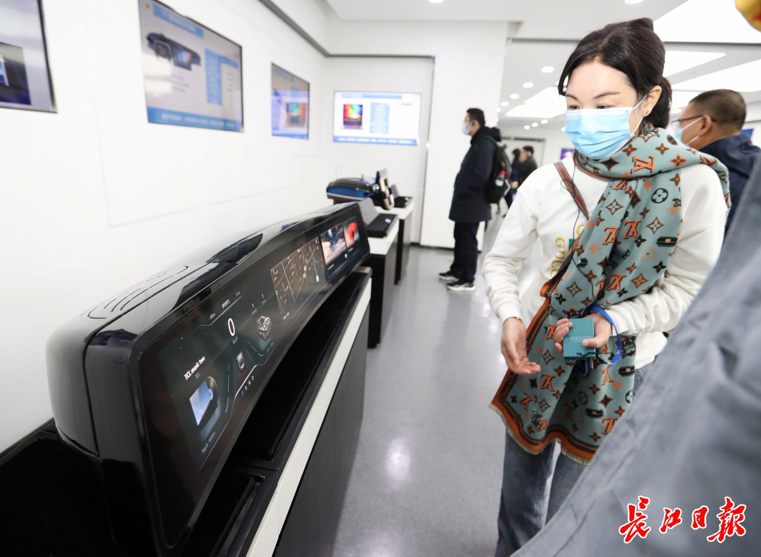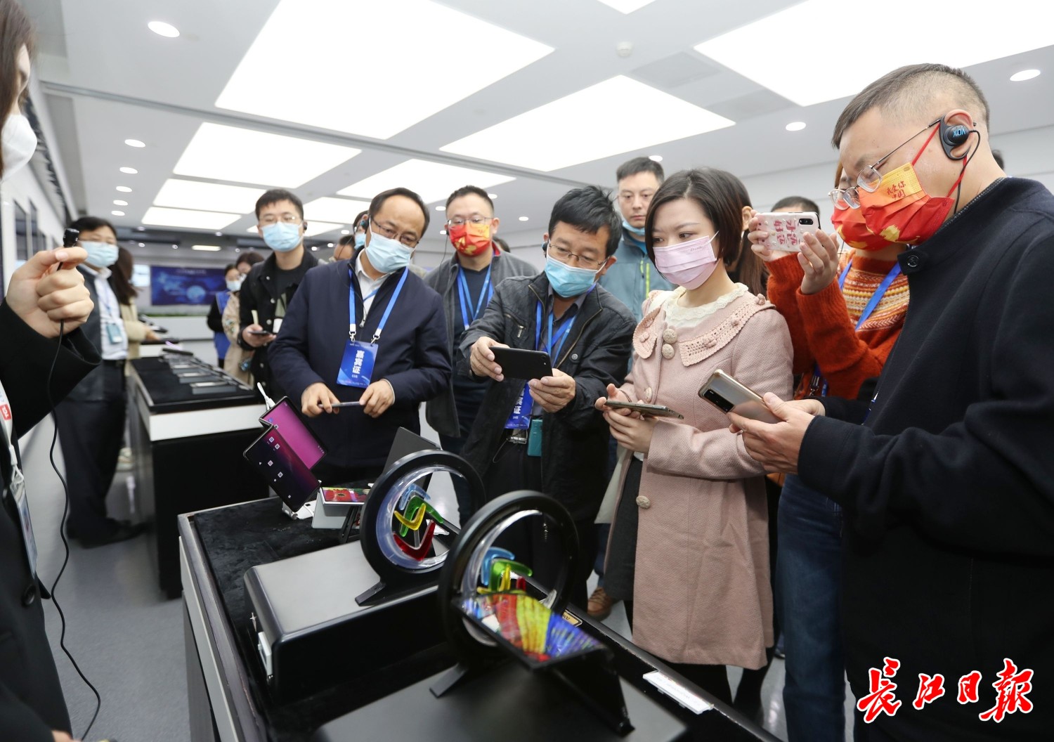 一行人一走進武漢華星光電,便被種類多樣、色彩豐富的屏幕吸引,與工作人員就手機屏幕的品牌、顯示度、便攜程度等方面進行探討,紛紛拿起相機拍照。