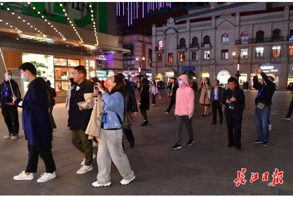10月18日晚,百名網(wǎng)媒總編興致勃勃地逛江漢路。