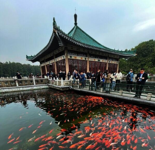 “喂魚啦!這些魚太可愛了。”剛拿到魚食,衡陽市石鼓區委融媒體中心副主任李文戀跑到魚池邊喂魚。她曾去過西湖、洱海等地,來到東湖后稱贊這里治理得很好:“這里的環境很宜人,這種較冷的天氣,游客仍然很多,水體很干凈,生態美就美在景色是渾然天成的,沒有明顯的人工痕跡,整體環境很協調。