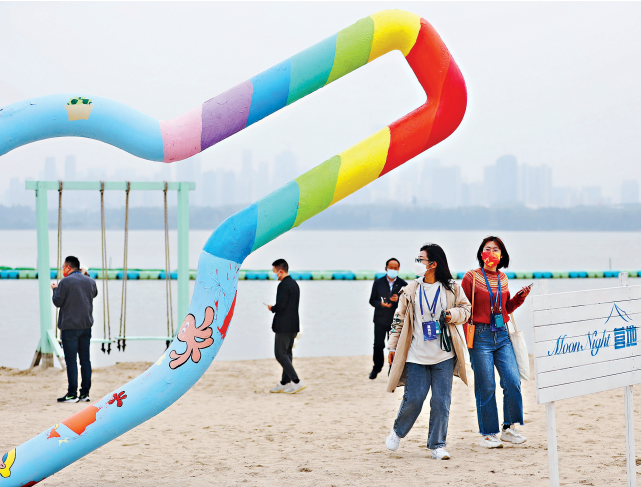 百名總編輯打卡東湖,在東湖沙灘浴場感受“海島自由”。 記者何曉剛 攝