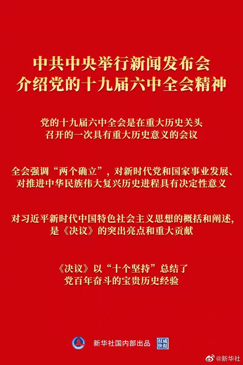 2021-11-12 17:10:08 來源:新華社微博原標題:權威快報丨中共中央舉行新聞發布會介紹黨的十九屆六中全會精神