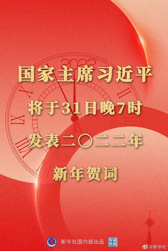 2021-12-30 10:22:03 來源:新華網(wǎng)原標(biāo)題:國家主席習(xí)近平將發(fā)表二〇二二年新年賀詞