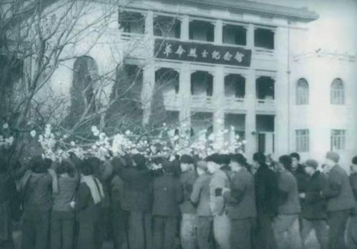 1976年1月8日,周恩來逝世后,天津人民在水上公園烈士陵園組織悼念活動并將佩戴的小白花系在柏樹上。