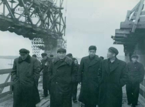 1957年1月8日,朱德在湖北視察建設中的武漢長江大橋。