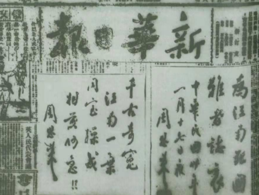 圖為周恩來為揭露國民黨頑固派制造“皖南事變”,在《新華日報》上刊發的題詞:“為江南死國難者志哀!”“千古奇冤,江南一葉,同室操戈,相煎何急?!”。