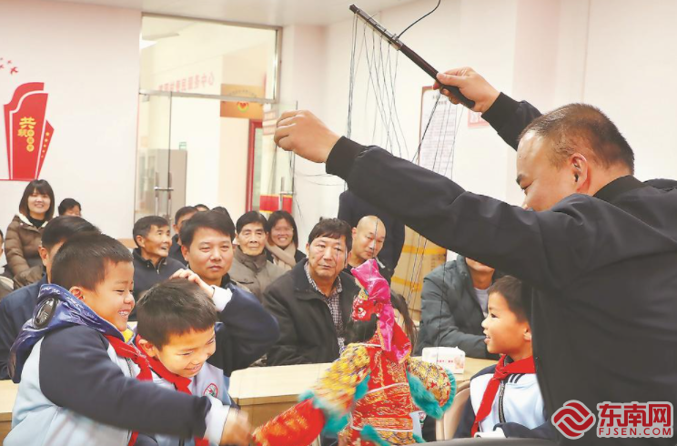 15日,在南安市梅山鎮(zhèn)演園村活動中心里,文藝志愿服務(wù)隊為鄉(xiāng)親們獻上一場別開生面的木偶表演。