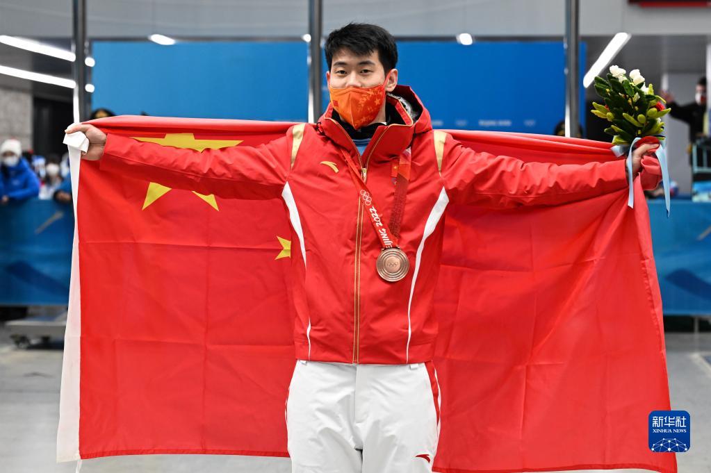 2月11日,中國選手閆文港賽后慶祝。新華社記者 賀長山 攝