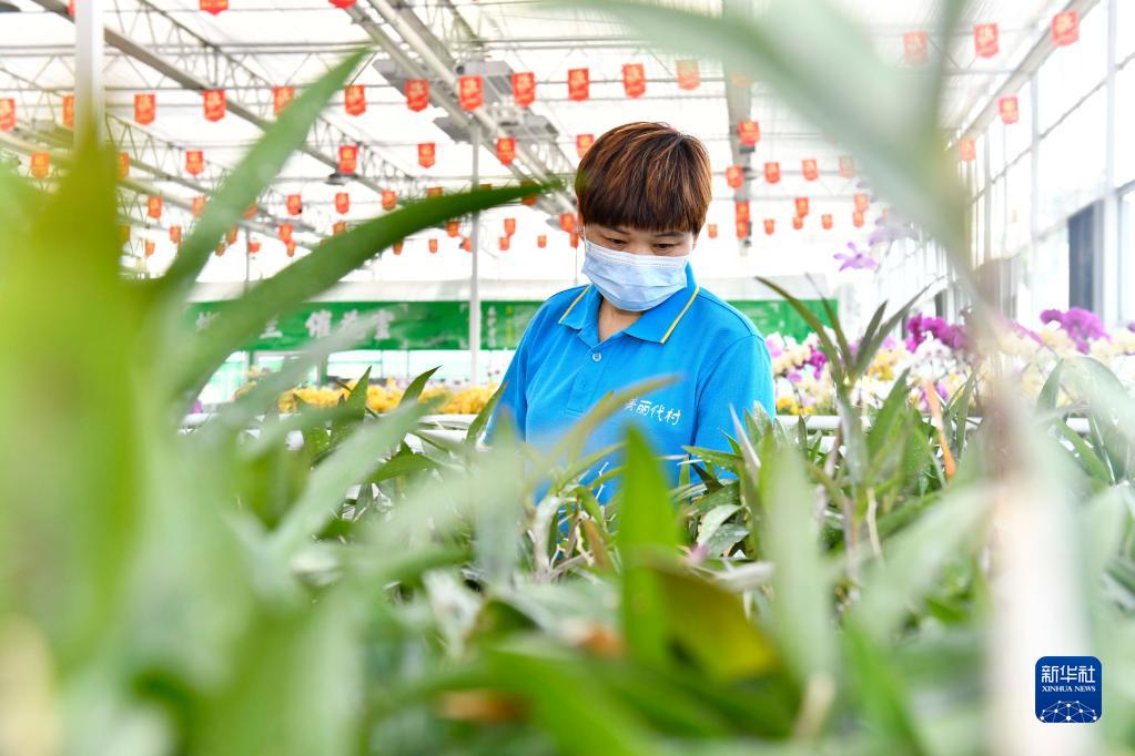 5月18日,在臨沂市蘭陵縣代村國家級現代農業示范園,工作人員在打理蝴蝶蘭。新華社記者郭緒雷攝