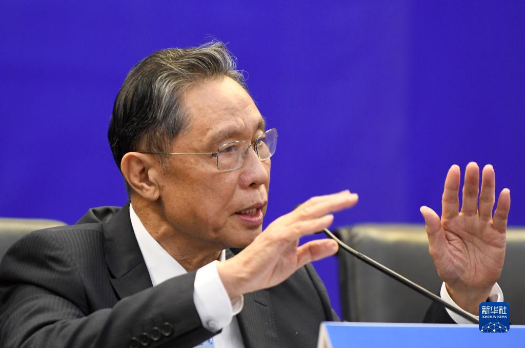 鐘南山出席廣州市疫情防控新聞通氣會(2020年3月18日攝)。新華社記者 盧漢欣 攝