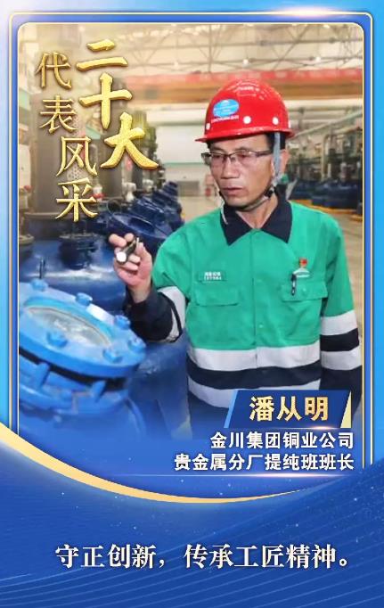 “二十大代表風采”一起來認識金川集團銅業公司貴金屬分廠提純班班長潘從明。