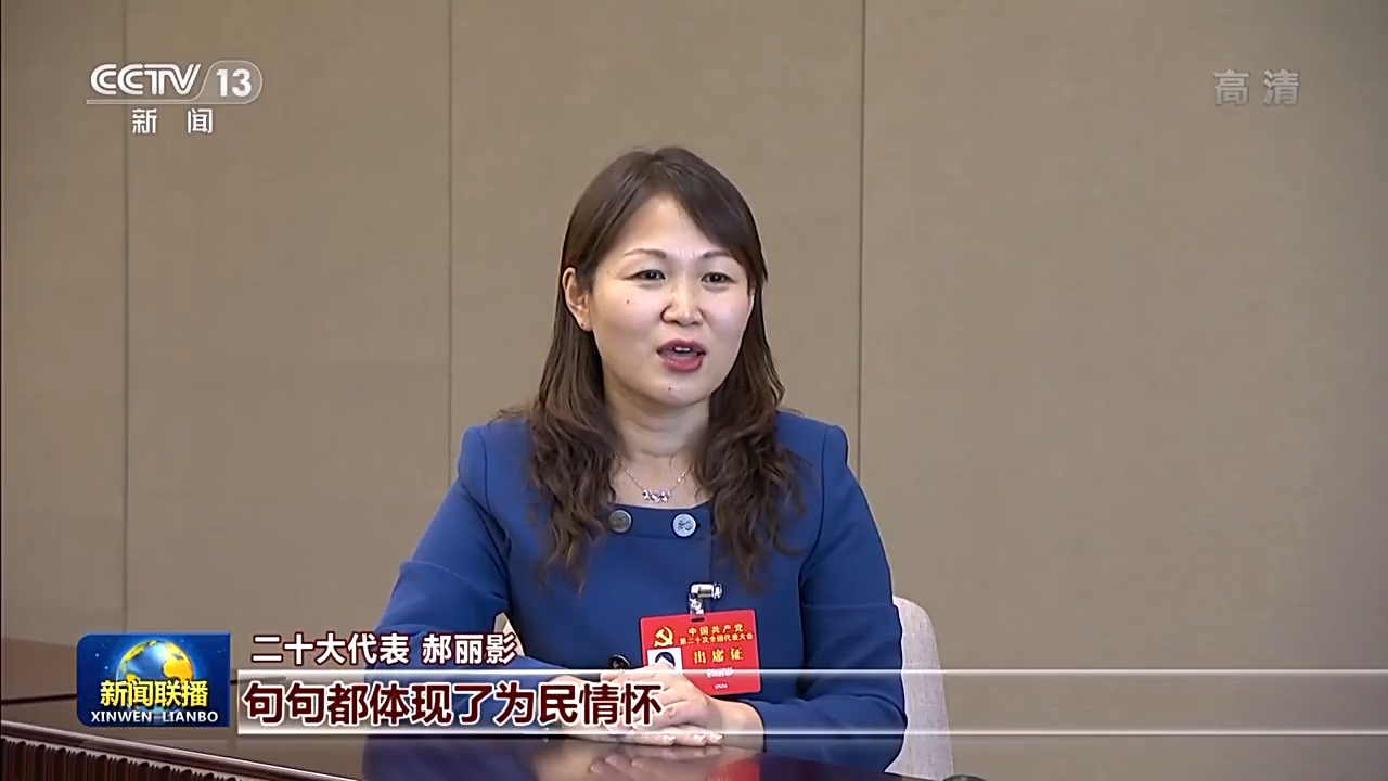 二十大代表 郝麗影:總書記的報告振奮人心,鼓舞士氣,句句都體現了為民情懷,給我們指明了前進的方向。十年來,我們的國家社會和諧、百姓安康,居民的腰包鼓了、信心足了。