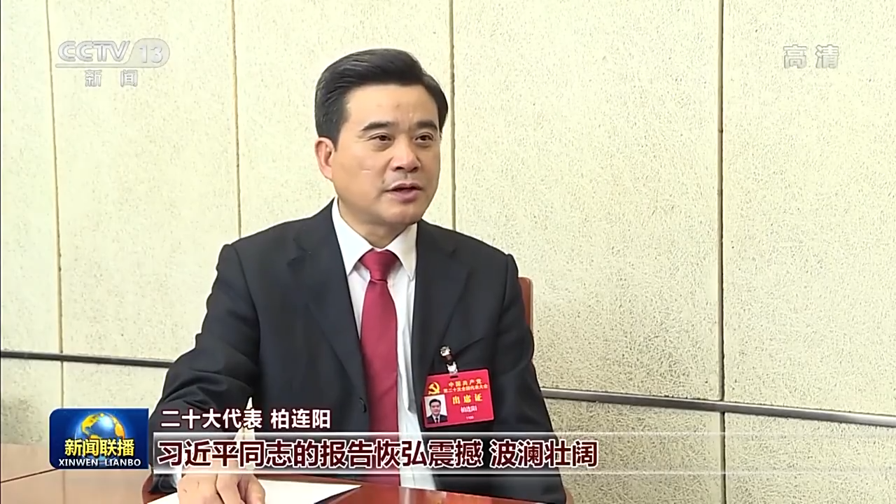 二十大代表 柏連陽:習近平同志的報告恢宏震撼、波瀾壯闊,通篇閃耀著馬克思主義的理論光輝和真理光芒,彰顯了中國共產黨為人民謀利益的堅定初心,彰顯了中國共產黨非凡的政治智慧和使命擔當。