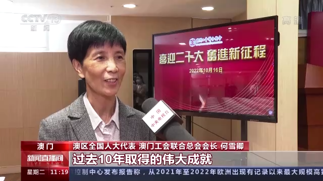 澳區全國人大代表 澳門工會聯合總會會長 何雪卿:習近平總書記在報告中全面總結了過去10年取得的偉大成就,對我們中華兒女是一個振奮人心的和巨大的鼓舞。