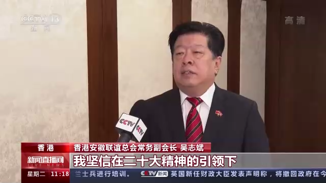香港安徽聯誼總會常務副會長 吳志斌:我堅信在二十大精神的引領下,在中央全力支持下,在“愛國者治港”原則下,香港由治及興的新階段一定能跑出融入國家發展大局的加速度,也一定可以在中華民族偉大復興的征程中貢獻自身的優勢和獨特力量。