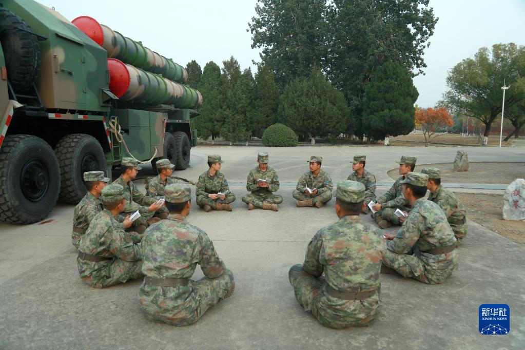 中共中央總書記、國家主席、中央軍委主席習近平24日下午出席軍隊領導干部會議時發表的重要講話,在解放軍和武警部隊引起強烈反響。這是中部戰區空軍“模范地空導彈營”開展“鳴鏑講堂”交流活動,積極組織官兵學習習主席重要講話(10月25日攝)。新華社發(趙勝之 攝)