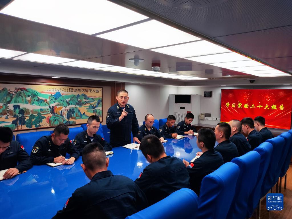 中共中央總書記、國家主席、中央軍委主席習近平24日下午出席軍隊領導干部會議時發表的重要講話,在解放軍和武警部隊引起強烈反響。這是東部戰區海軍護衛艦支隊迅速組織官兵學習習主席重要講話(10月25日攝)。新華社發(劉祎瑋 攝)