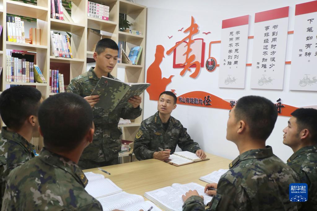 中共中央總書記、國家主席、中央軍委主席習近平24日下午出席軍隊領導干部會議時發表的重要講話,在解放軍和武警部隊引起強烈反響。這是南部戰區陸軍第74集團軍某合成旅“大渡河連”組織官兵認真學習習主席重要講話(10月25日攝)。新華社發(薛健 攝)