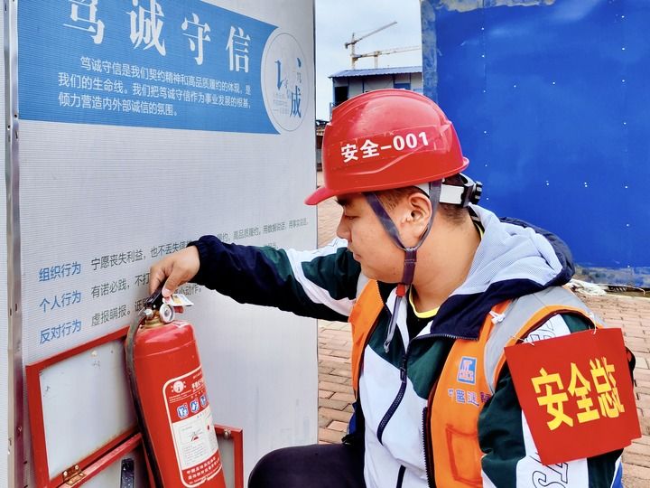 2023年4月30日,中建三局云南分公司安全總監蒲札在進行消防檢查。新華社發(王威 攝)