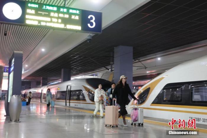 圖為2024年春運旅客在鐵路上海虹橋站3號站臺行走。中新網記者 殷立勤 攝