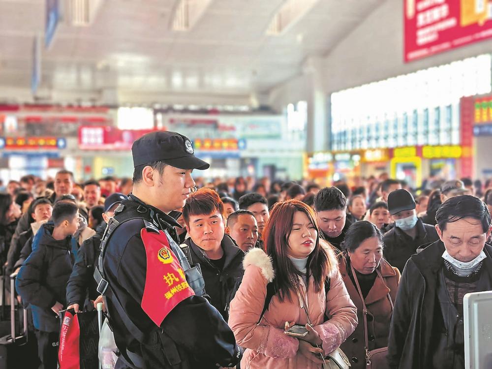 正月初二,福州車站派出所民警堅守崗位,確保旅客平安出行。何祖謀 攝