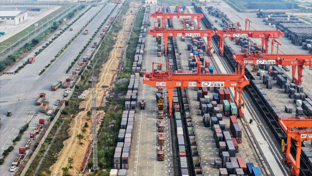 廣西北部灣欽州港,裝載著機(jī)械裝備、電子元件和輕工產(chǎn)品的鐵海聯(lián)運(yùn)班列正在繁忙運(yùn)轉(zhuǎn)。今年以來,西部陸海新通道鐵海聯(lián)運(yùn)班列運(yùn)輸集裝箱貨物已突破20萬標(biāo)箱,創(chuàng)歷年同期新高,日均發(fā)送2251標(biāo)箱,同比增長(zhǎng)7.2%。