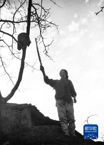 這張照片拍攝于1942年,作者江波。照片中,一棵粗壯的棗樹挺拔地站立在藍(lán)天之下,樹上懸掛著一口鐘。一名婦女站在樹下,隨著她揮臂用力敲擊,鐘聲響徹天空……她是誰?又為何敲響這口鐘?這張中國照片檔案館的館藏照片,引出一段令人難忘的抗戰(zhàn)歲月。