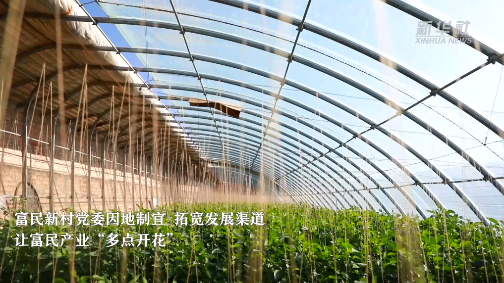 在甘肅省武威市古浪縣富民新村,養殖與種植產業相輔相成,共同發展。日光溫室種植區內,辣椒、人參果、香瓜等經濟作物郁郁蔥蔥,長勢喜人。