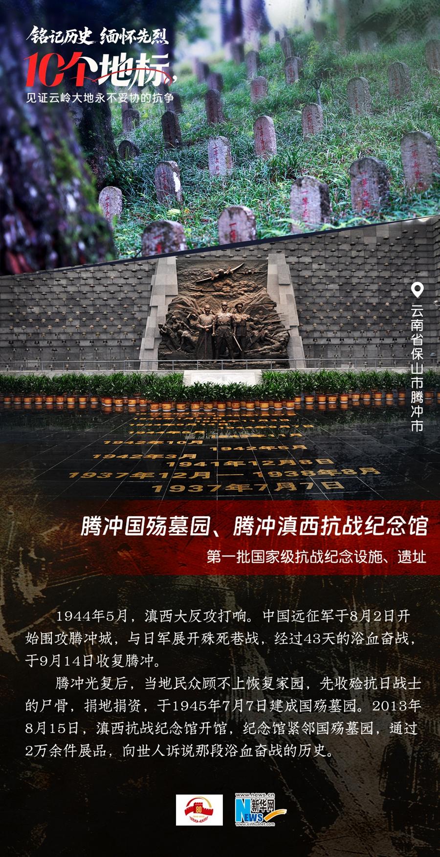 80年過去,曾經(jīng)的戰(zhàn)場硝煙雖散,但英氣永存。在國務院公布的前三批國家級抗戰(zhàn)紀念設施、遺址名錄中,云南省共有10個,分別為騰沖國殤墓園、騰沖滇西抗戰(zhàn)紀念館,龍陵抗日戰(zhàn)爭紀念館,國立西南聯(lián)合大學舊址,抗戰(zhàn)勝利紀念堂,松山戰(zhàn)役舊址,南洋華僑機工回國抗日紀念碑,怒江駝峰航線紀念館,施甸縣抗日江防遺跡群,滇緬公路惠通橋,滇西抗日戰(zhàn)爭紀念碑。它們承載著國人共同的歷史記憶與民族情感,也為我們學習和傳承抗戰(zhàn)精神提供了現(xiàn)實條件。
