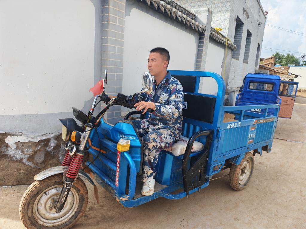8月10日,王棟駕駛農(nóng)用車準(zhǔn)備運(yùn)送物資。新華社記者 崔翰超 攝