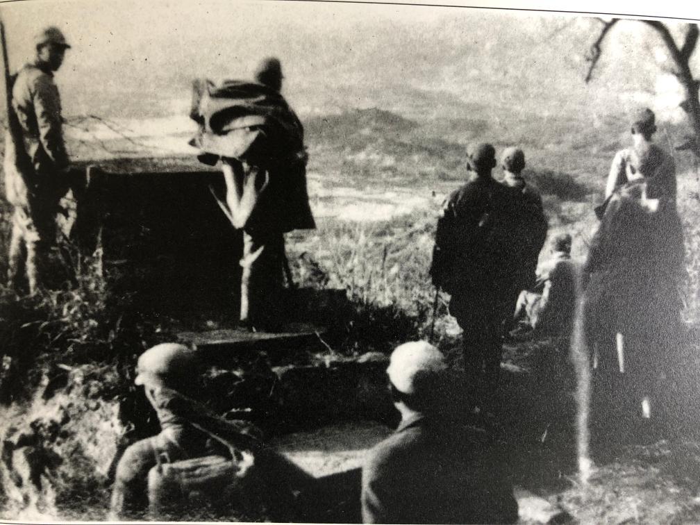 新四軍指戰員在戰斗前觀察地形。(葉挺攝)