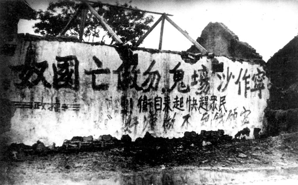 新四軍書寫的抗日宣傳標語。(葉挺攝)