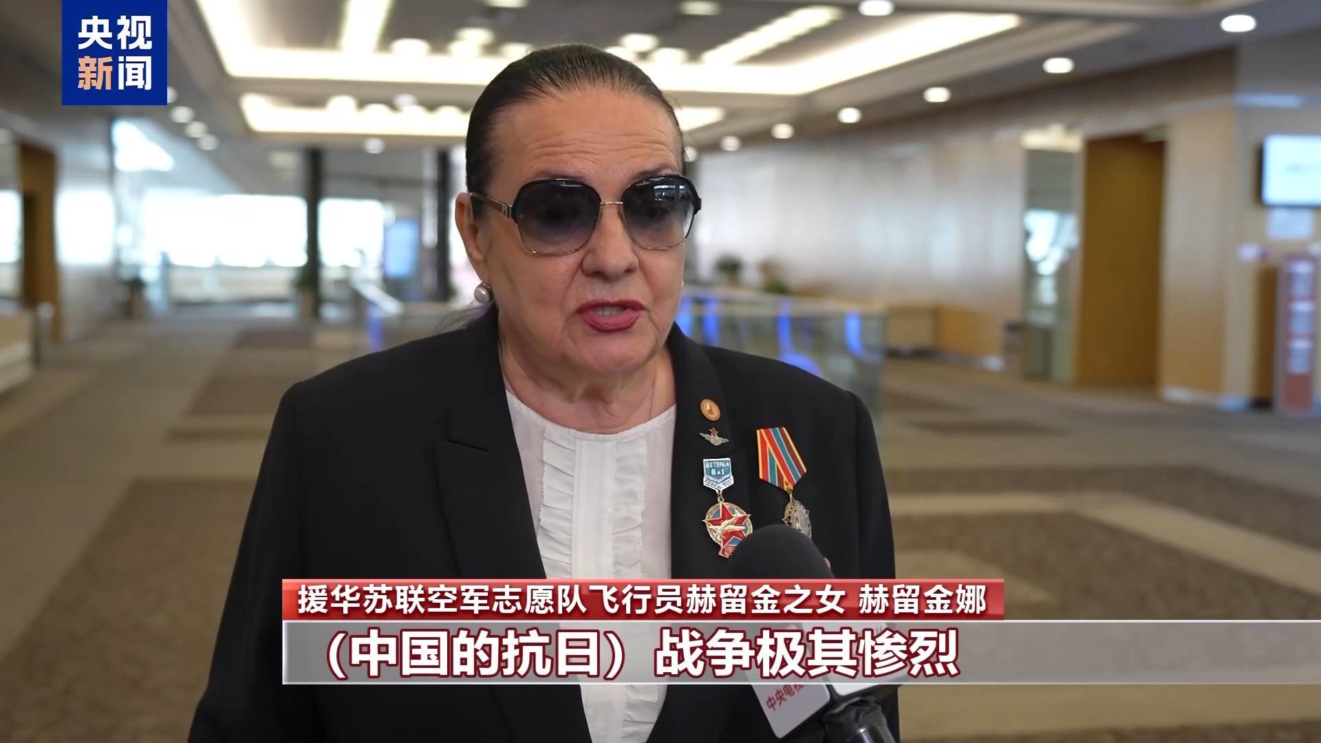 援華蘇聯空軍志愿隊飛行員赫留金之女 赫留金娜:中國的抗日戰爭極其慘烈,很多村莊、城市等都被摧毀殆盡,中國人民遭受了慘重損失,最終日本的侵略被擊退。二戰期間,中國為結束這場戰爭作出巨大貢獻。