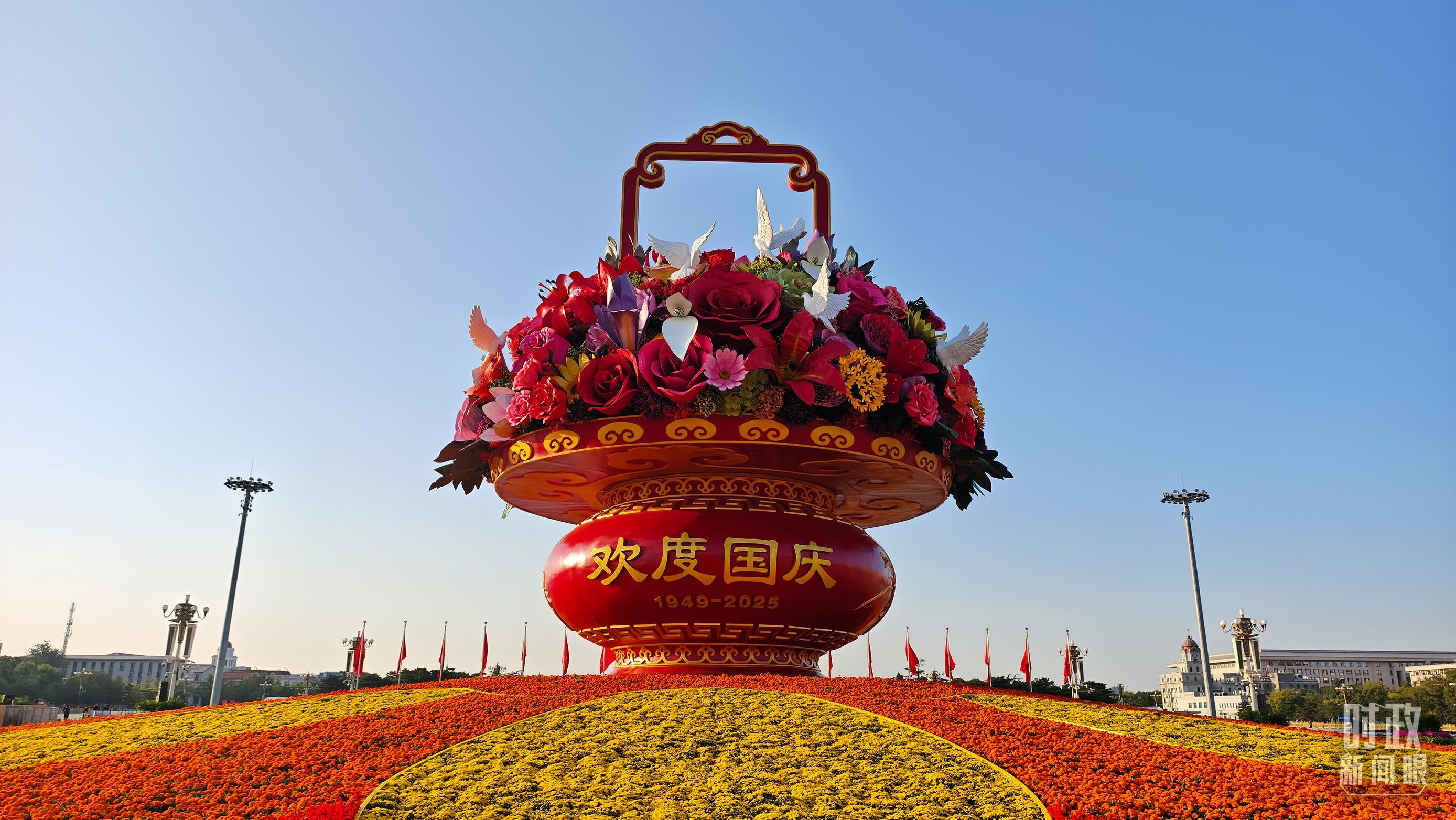 △天安門廣場上的大花籃。(總臺央視記者韓銳拍攝)