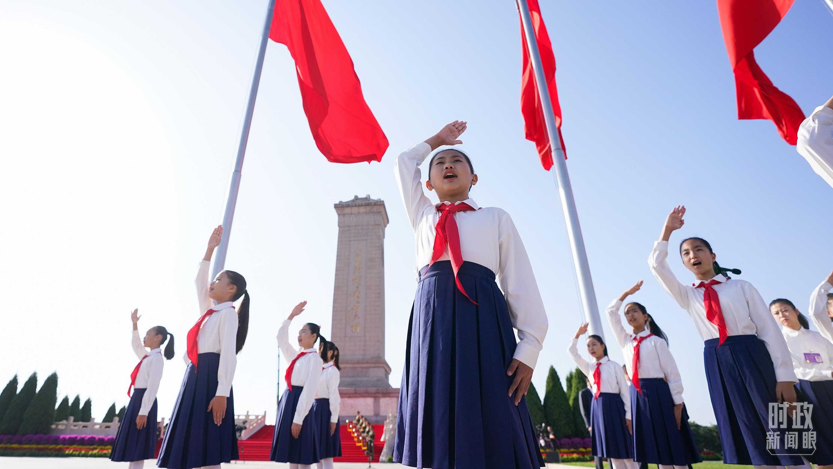 △參加烈士紀念日向人民英雄敬獻花籃儀式的少年兒童。(總臺記者李晉拍攝)