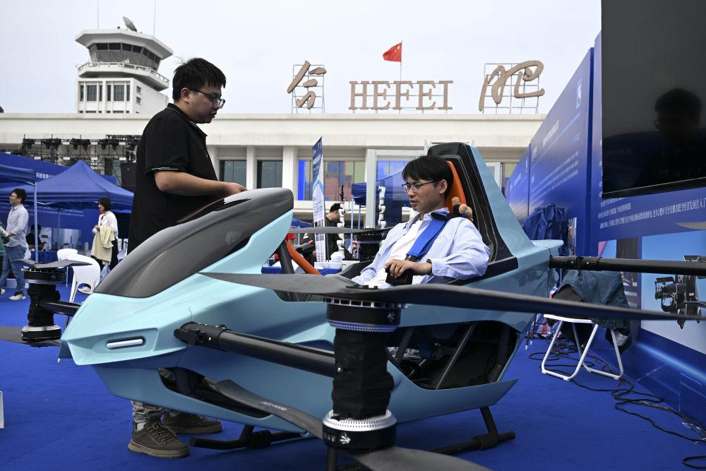 2025年9月21日,觀眾在2025世界制造業(yè)大會(huì)“全空間無人體系成果展”上體驗(yàn)由安徽猛獅航空科技有限公司展出的一款無人駕駛飛行摩托。新華社記者 黃博涵 攝