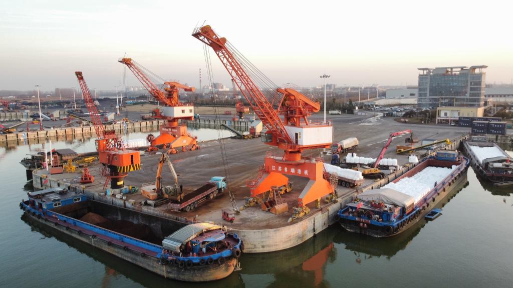 這是2025年1月7日拍攝的周口中心港范營(yíng)作業(yè)區(qū)。新華社發(fā) (劉俊濤攝)